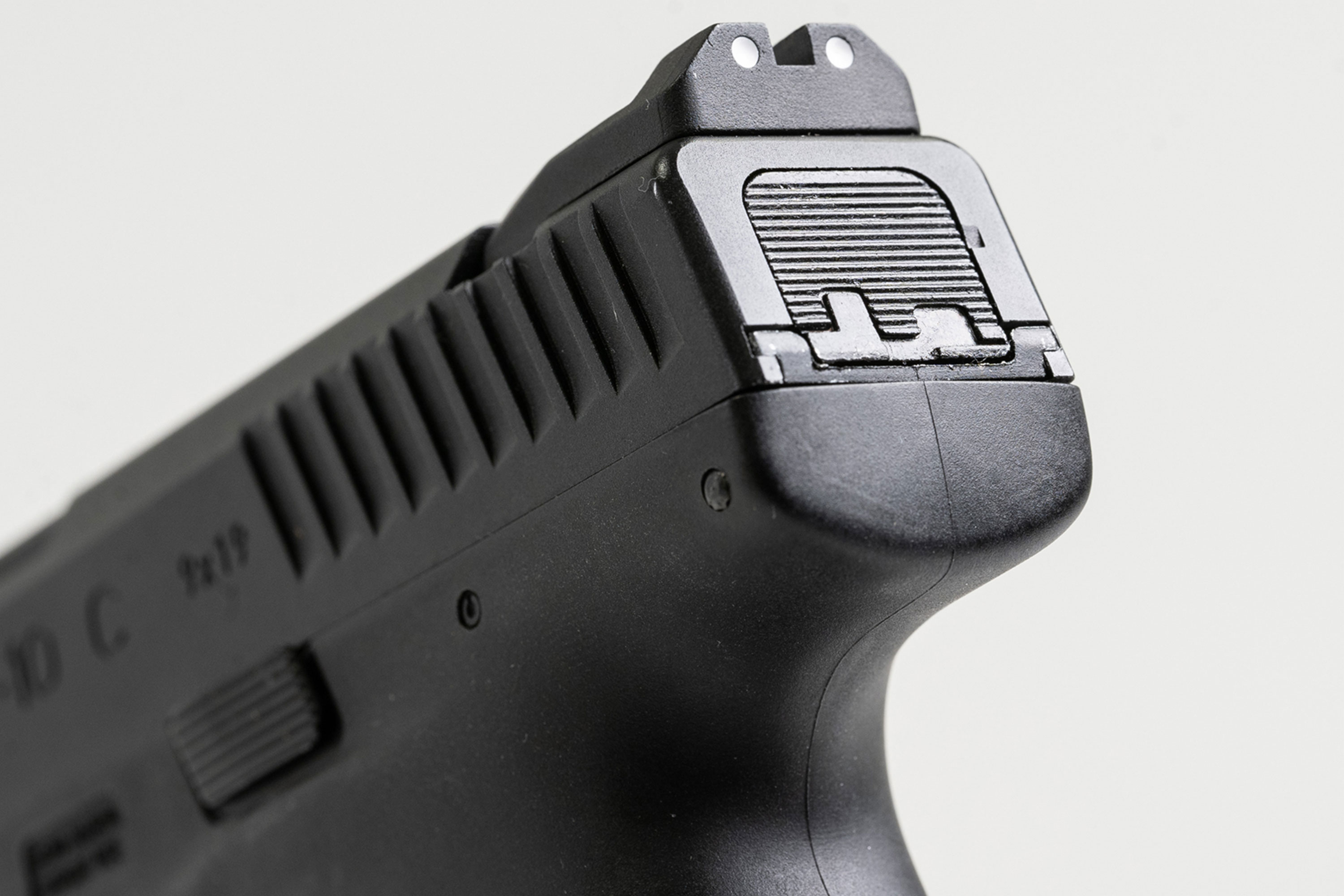 Die CZ P-10 C überzeugt als maßstabsgetreuer Nachbau mit einer robusten Konstruktion und einem ergonomischen Griff für Komfort und Präzision beim Schießen.