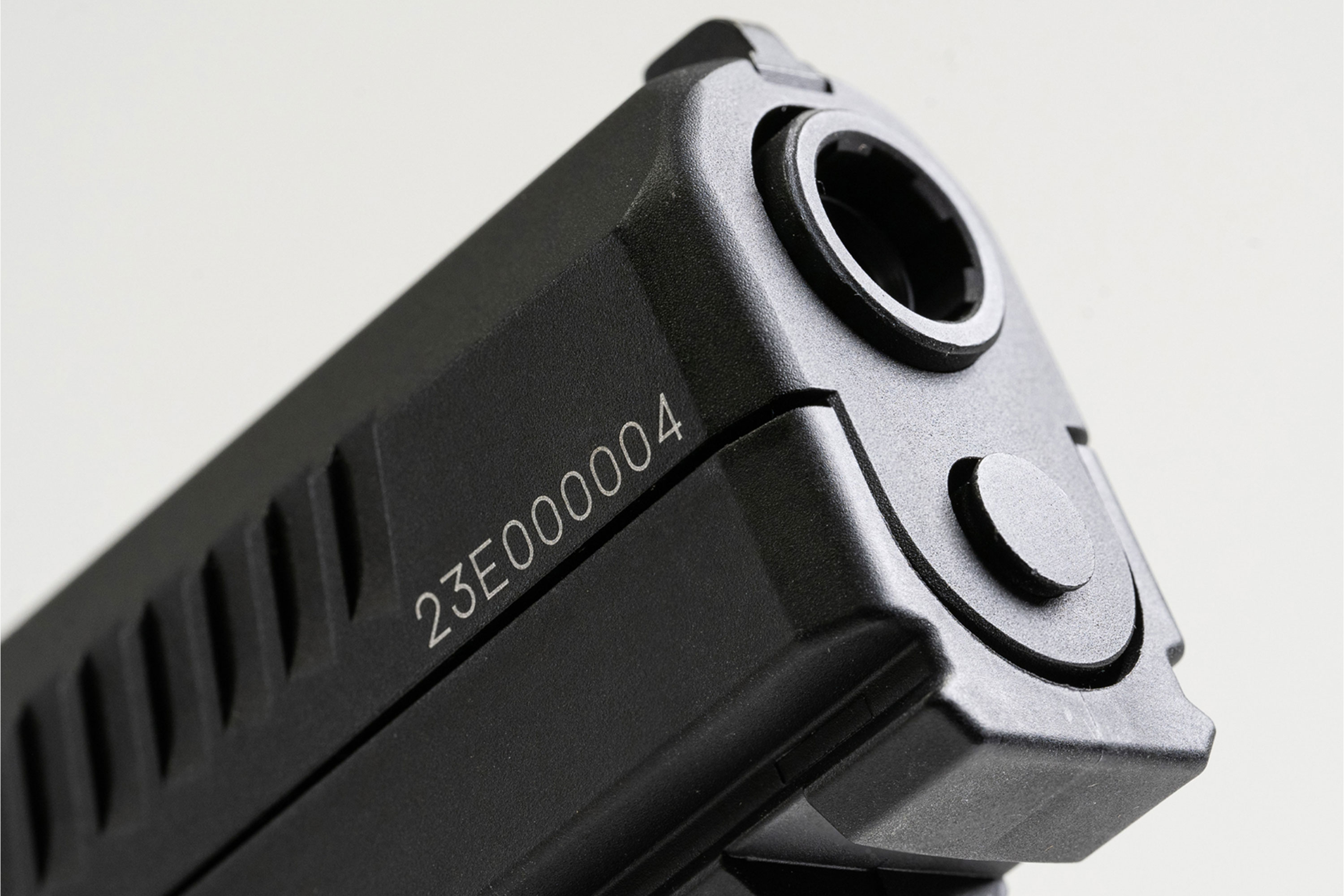 - Metallschlitten, Kunststoffgriffschalen, strukturierter Griff und Serrations für einfache Handhabung