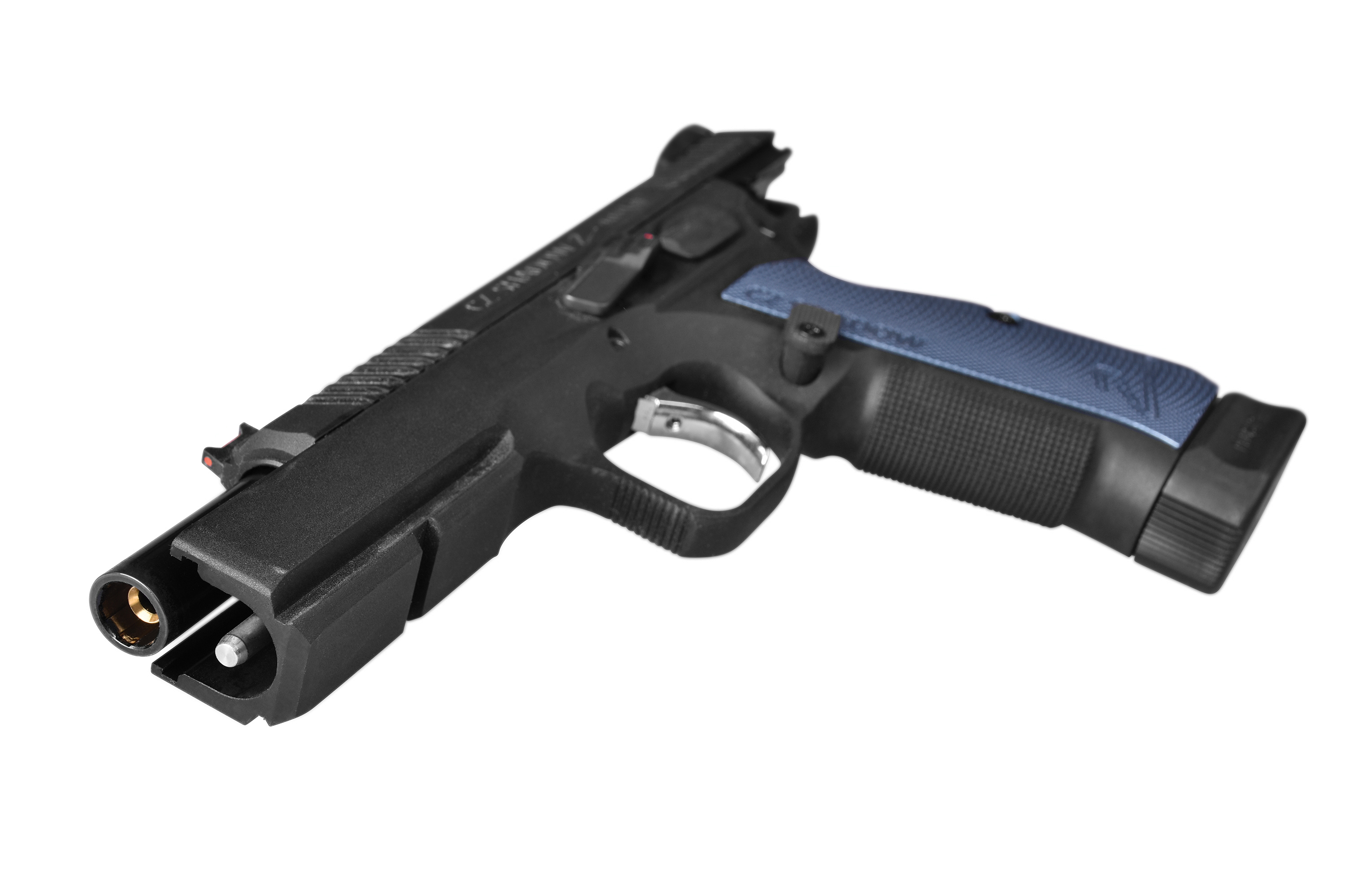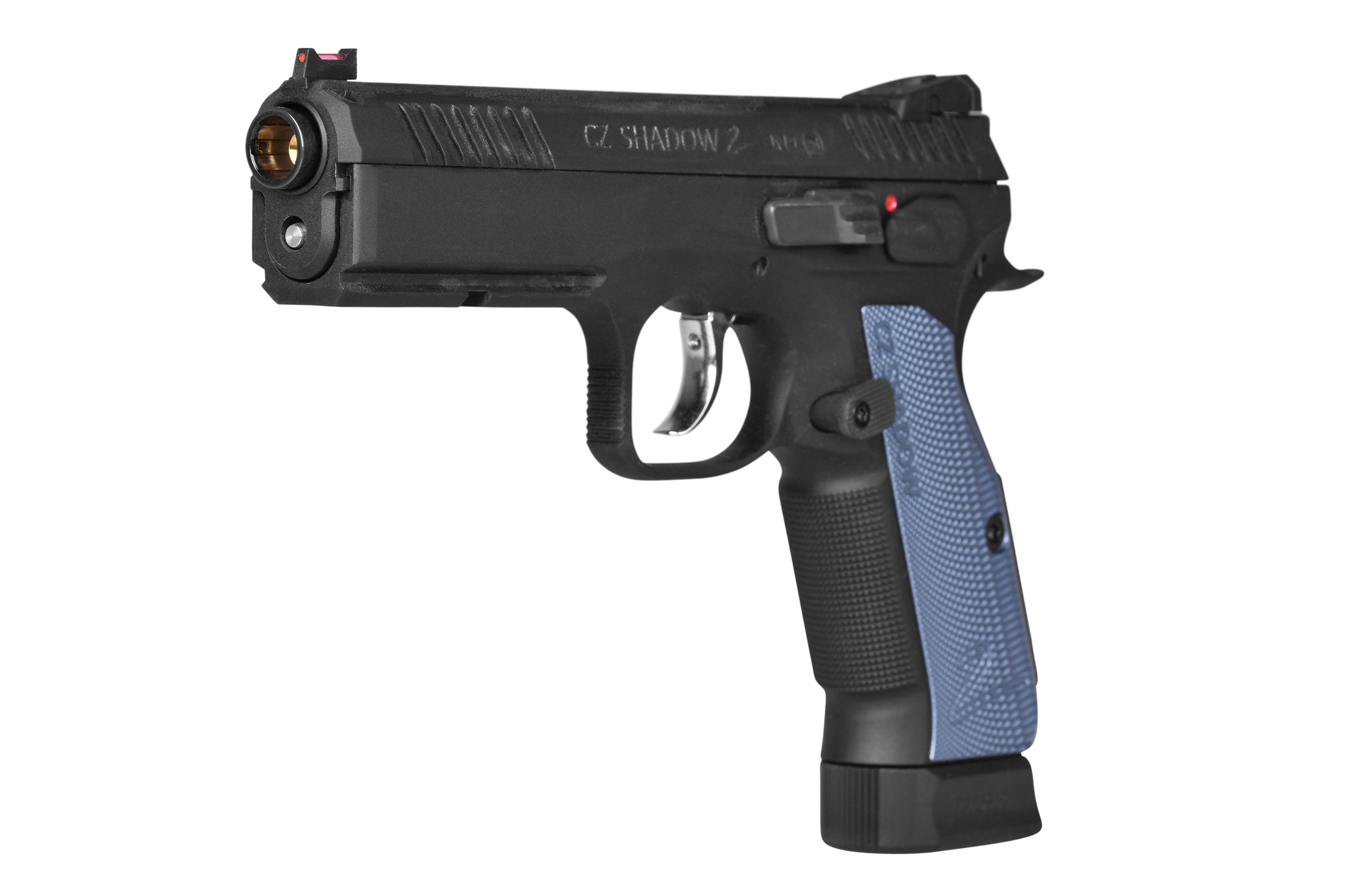 Der Schlitten ist aus eloxiertem Aluminium gefertigt und bietet ein eckigeres Design. Tiefere und ausgeprägtere Serrations am Schlitten erlauben einen festeren Griff. Darüber hinaus fördert die ausgeprägte Struktur am Griffstück in Kombination mit den CNC-gefrästen Griffschalen mit dünnerem Profil einen optimalen Grip. Der Abzugsbügel der Shadow 2 wurde verlängert, um den Zugang zum Abzug zu erleichtern und ein überlegenes Schießerlebnis auch mit Handschuhen zu ermöglichen.