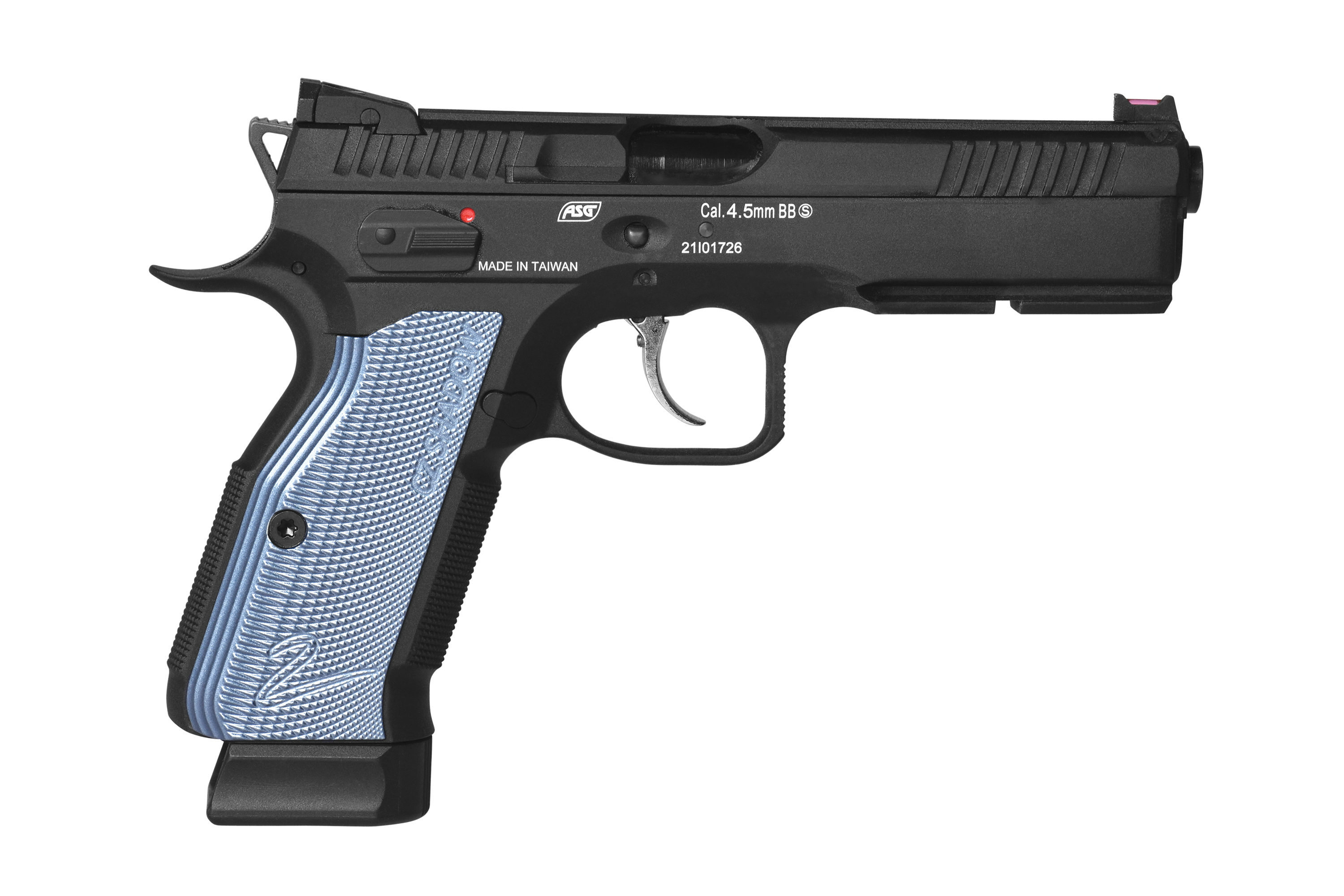 Das Original-Vorbild, die Shadow 2 wurde von erstklassigen Wettkampfschützen entwickelt und ist eine gut ausbalancierte Handfeuerwaffe, die auf Geschwindigkeit und Präzision ausgelegt ist. Der voll-lizensierte Nachbau von ASG als 4,5-mm Luftpistole orientiert sich an ihrem Gegenstück aus echtem Stahl und bietet