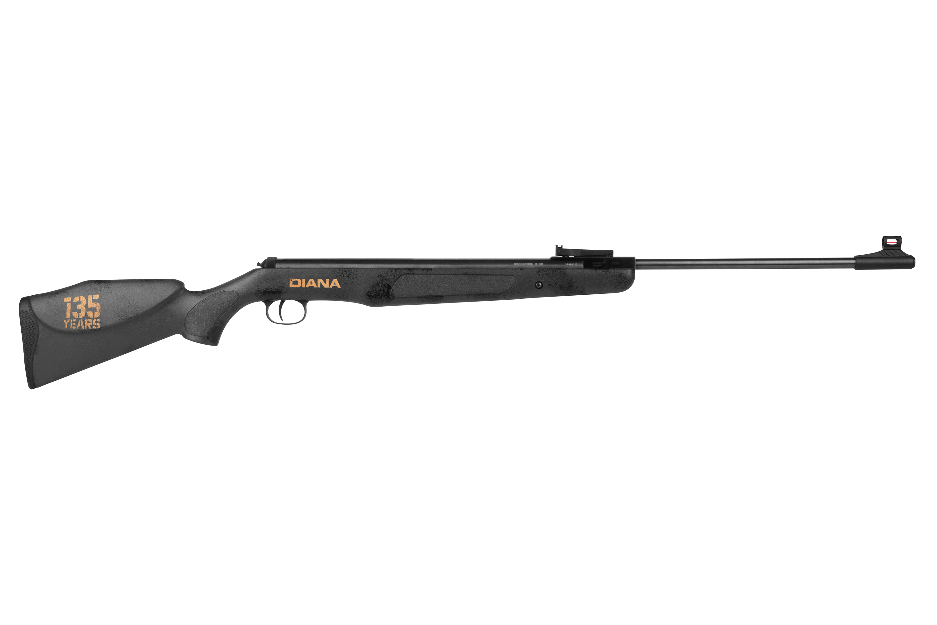 Die DIANA Panther 350 Magnum 135 Years Anniversary Edition kombiniert kompromisslose Leistung mit einem markanten Jubiläumsdesign. Ausgestattet mit einem speziell gestalteten Allwetter-Polymer-Schaft und einem „135 Jahre“-Jubiläumslogo, verbindet dieses Modell modernes Design mit Tradition. Jeder Schaft ist ein handbemaltes Unikat, was jedes Gewehr zu einem Einzelstück macht.