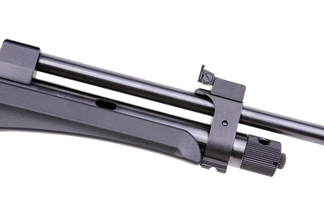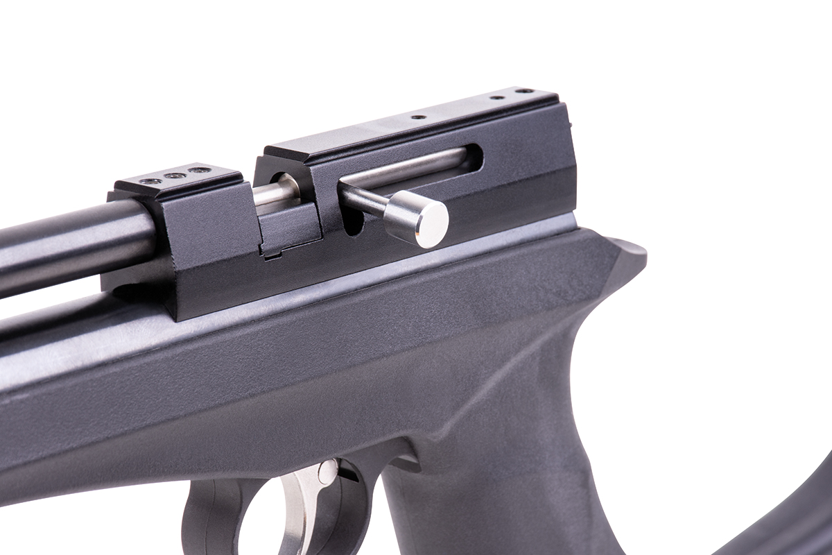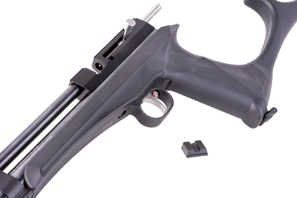 Das DIANA chaser Rifle Set beinhaltet die chaser Pistol, einen Hinterschaft, einen Silencer und einen Gewehrlauf. Es wird mit einer Einzelschuss-Einlage geliefert, kann aber auch mit einem optionalen 9-Schuss Trommelmagazin betrieben werden. Die gefräste Prismenschiene ermöglicht den Anbau einer passenden Optik.