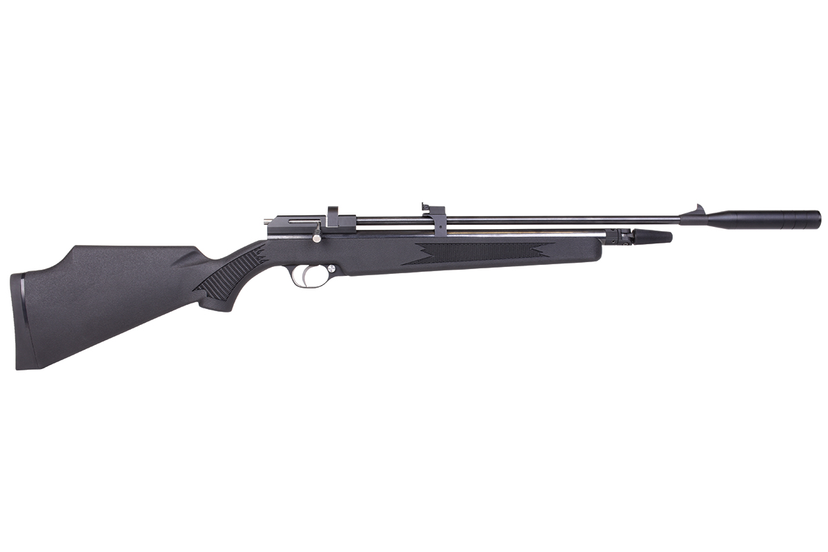 Das Gewehr kann sowohl im Einzelschuss-Modus als auch mit dem mitgelieferten 9-Schuss Magazin betrieben werden und verfügt über eine gefräste Prismenschiene, eine einstellbare hintere Visierung, einen einstellbaren Abzug und einen abnehmbaren Schalldämpfer.