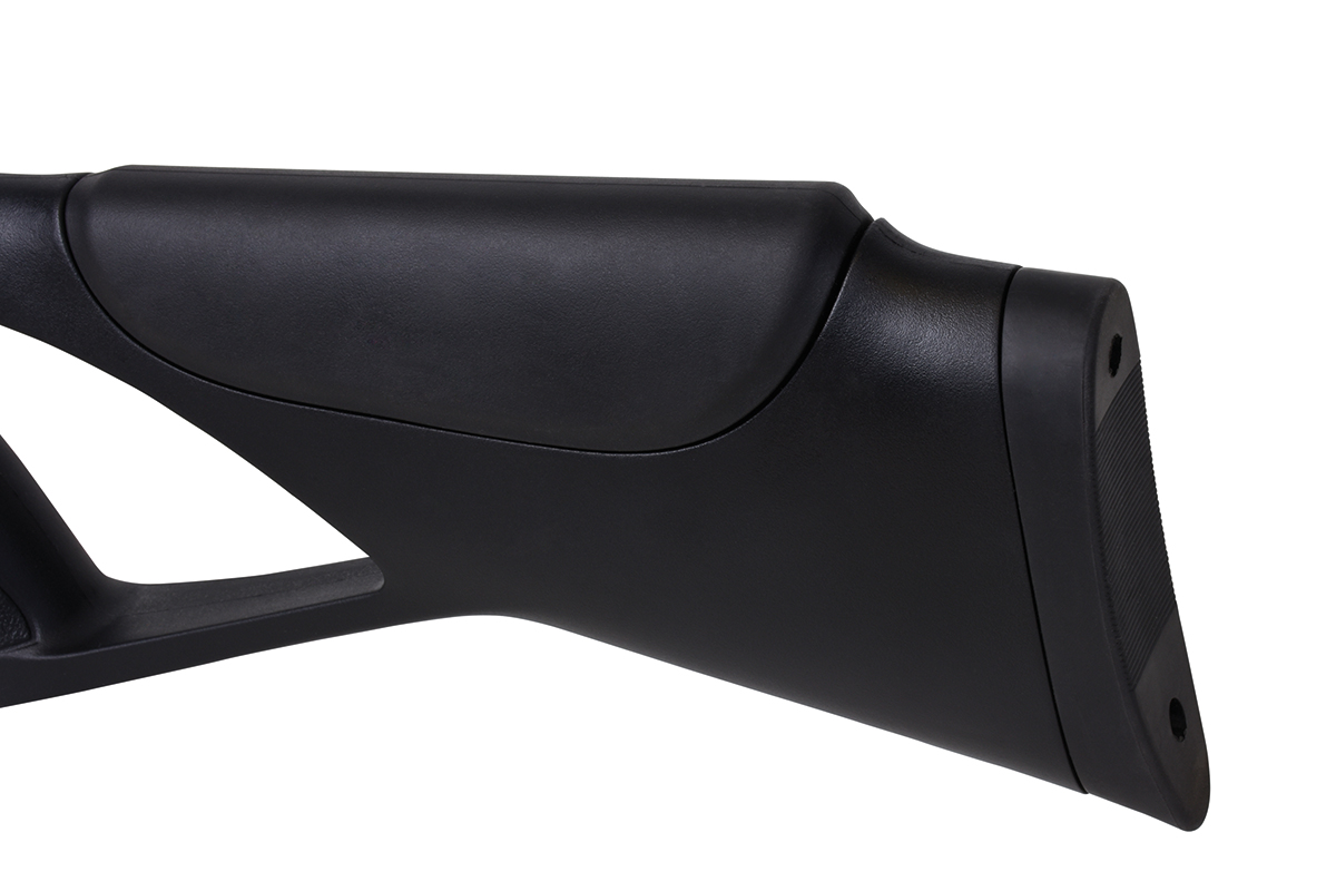 Das DIANA-Luftgewehr in modernem Design mit ergonomischem Kunststoff-Lochschaft verfügt über eine verstellbare Schaftbacke, eine gummierte Schaftkappe und eine gefräste Prismenschiene.