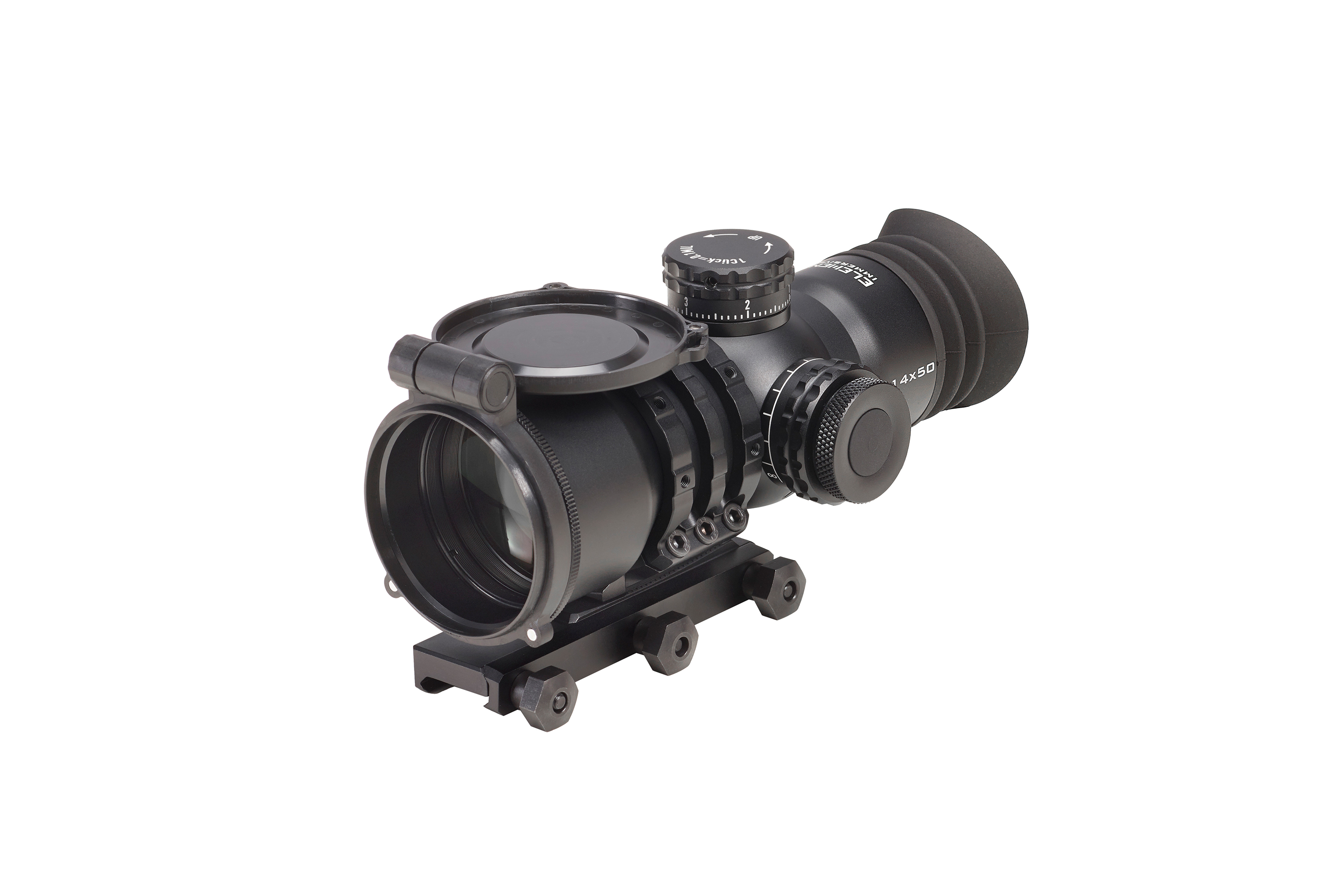 Die 14x50 Modelle verfügen über einen kurzen Augenabstand und ermöglichen so ein unglaubliches Sichtfeld von bis zu 4x eines herkömmlichen Zielfernrohrs bei gleicher Vergrößerung. Es ist für Waffen ohne oder mit nur sehr geringem Rückstoß geeignet, wie zum Beispiel Luftgewehr- oder Kleinkaliber-Gewehre.