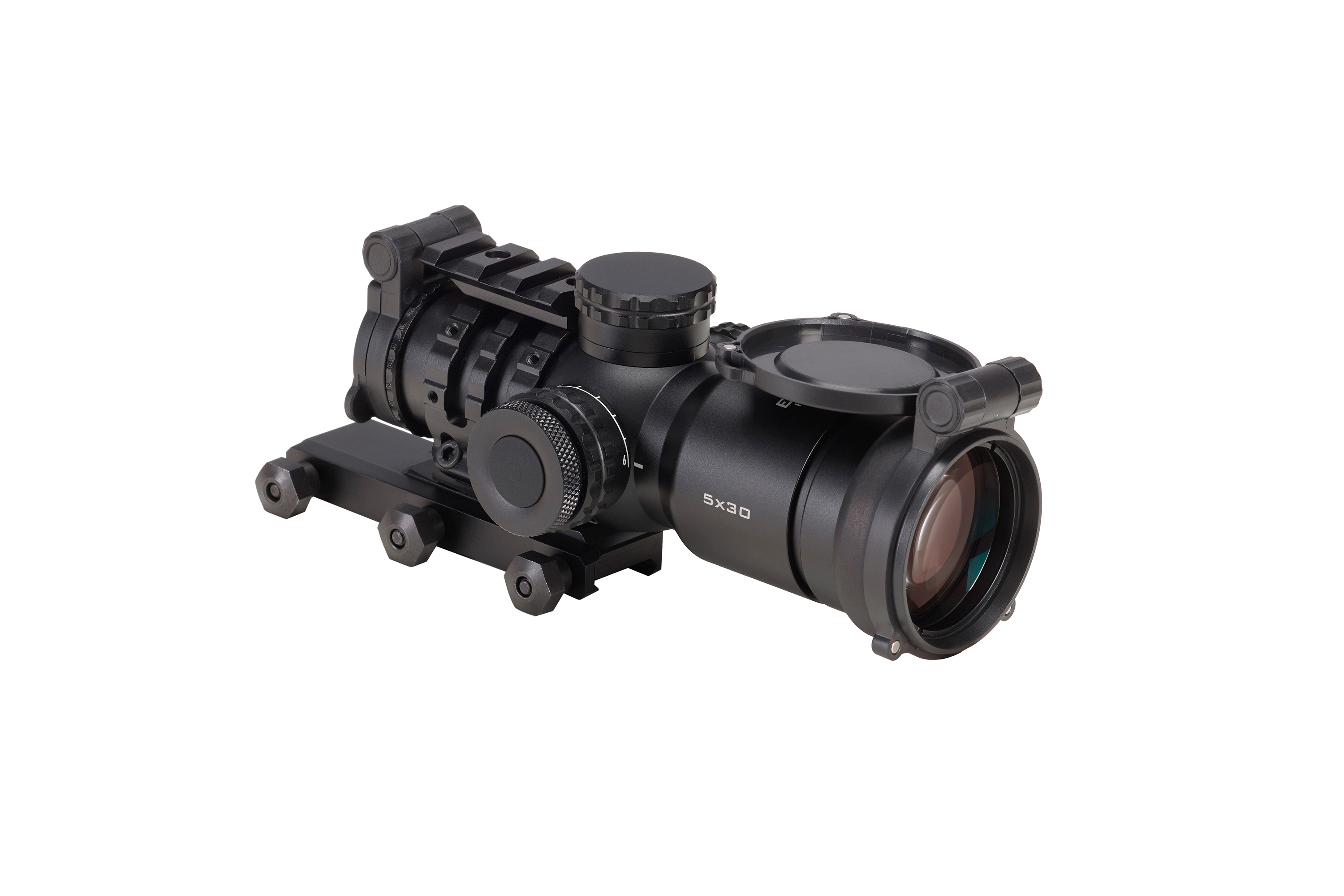 - Feste Vergrößerung & sehr großes Sehfeld (< 37 % größer, als bei traditionellen Zielfernrohren)
