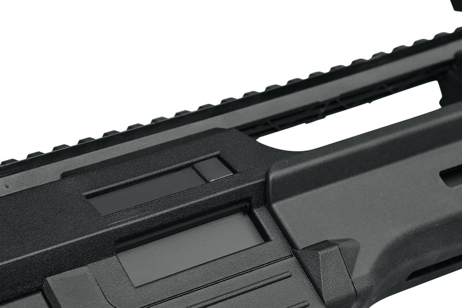 Natürlich verfügt die G14 Carbine auch über das integrierte Electronic Firing Control System (EFCS) von ARES. Mit dieser neuen Gearbox-Generation gehört der Getriebestopp der Vergangenheit an. Die intelligente Gearbox stoppt automatisch z. B. bei zu geringer Betriebsspannung. Das All-In-One Design bietet ein geschlossenes System und geringen Instandsetzungsaufwand. In Verbindung mit der Programmierbox ist die programmierbare Chipsteuerung auf den Akkutyp konfigurierbar, zum Schutz vor Tiefenentladung.