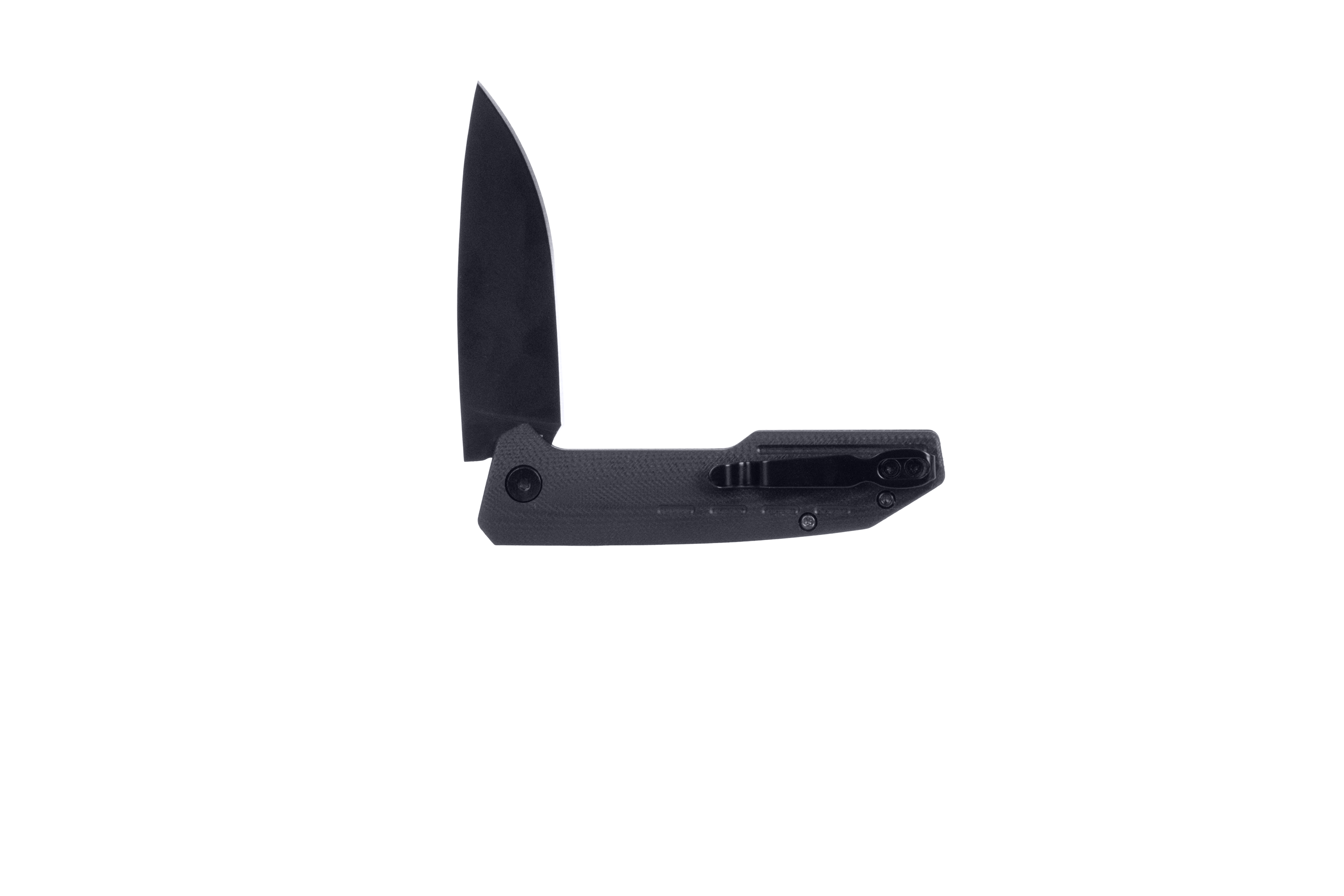 Die Klinge besteht aus D2 Werkzeugstahl, der für seine Verschleißfestigkeit und Schnitthaltigkeit bekannt ist. Eine schwarze Beschichtung reduziert Reflexionen und bietet zusätzlichen Oberflächenschutz.