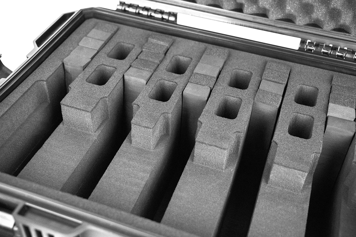 • Schützendes Inlet mit Schaumstoffposterung für bis zu 5 Kurzwaffen und 10 Magazine