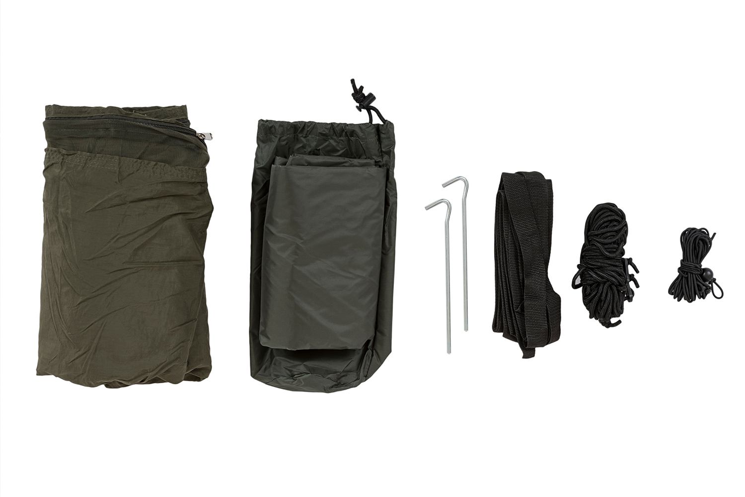 Die Highlander Crusader Waterproof Hammock ist ein durchdachtes Outdoor-Schlafsystem für Übernachtungen abseits des Bodens. Die Hängematte verfügt über ein integriertes Moskitonetz und wird mit einem wasserdichten Tarp (2000 mm Wassersäule) geliefert, das zuverlässigen Schutz vor Regen, Insekten und Witterungseinflüssen bietet.