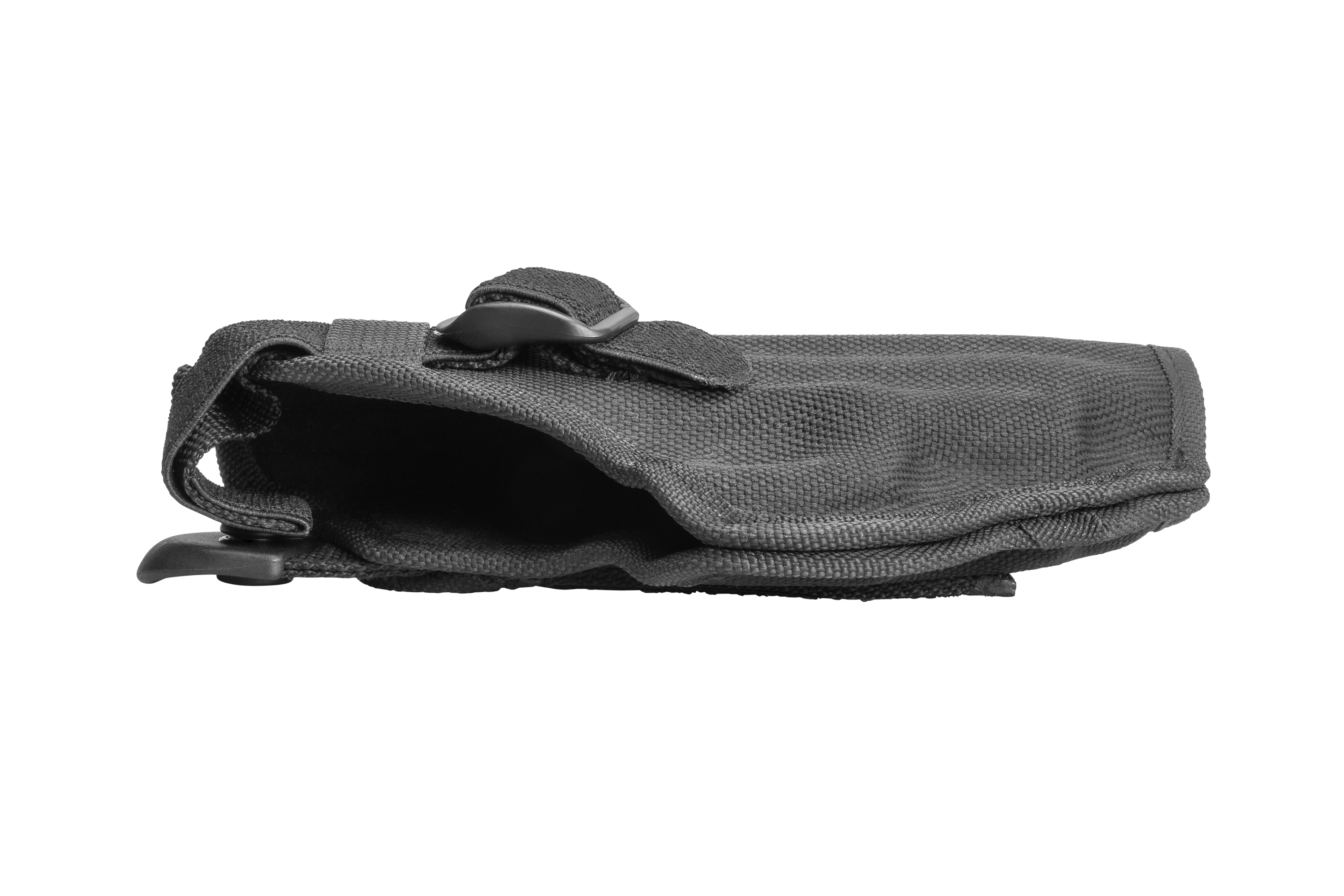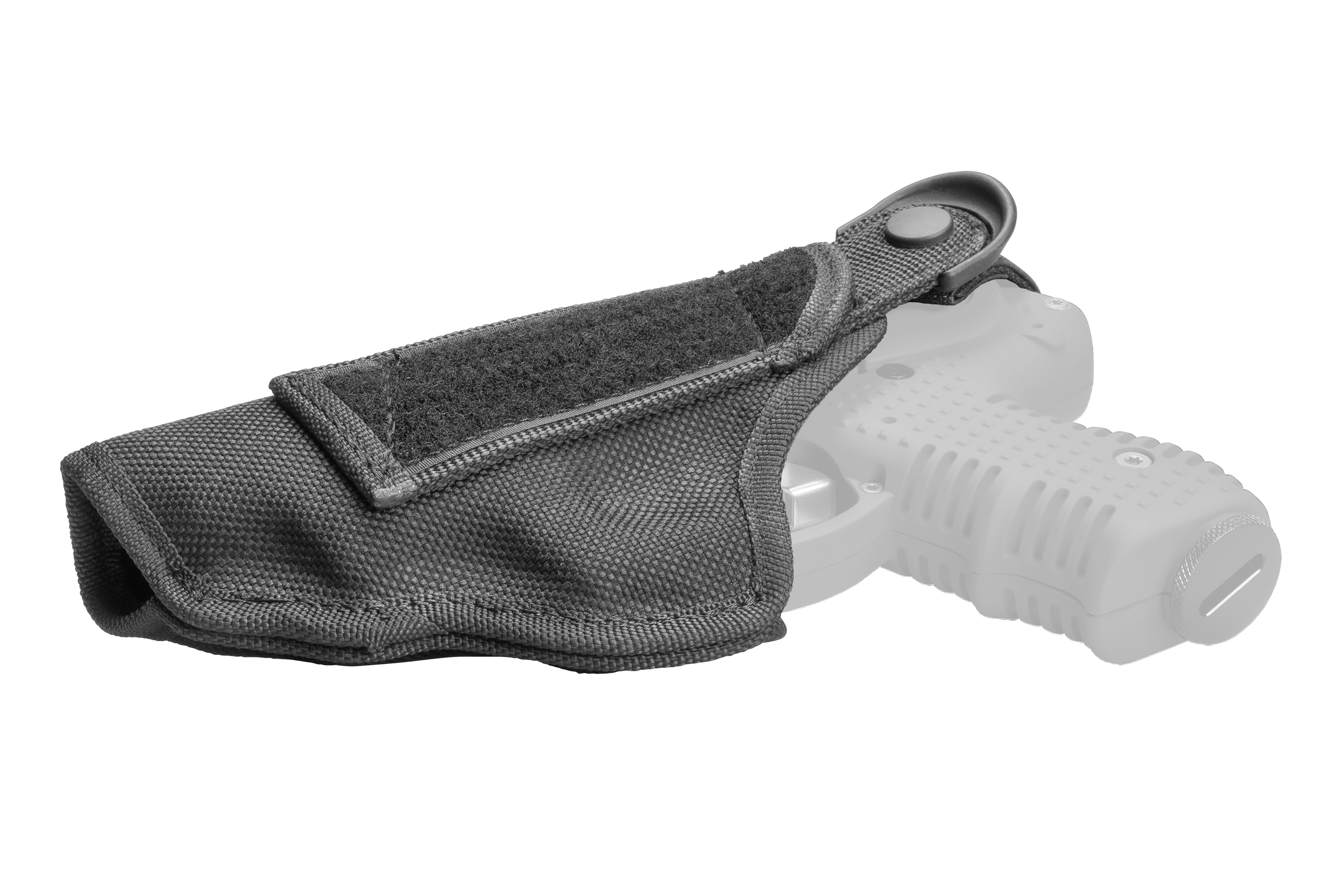 Das Holster besteht aus pflegeleichtem, verstärkten Cordura und wird per Druckknopf gesichert.