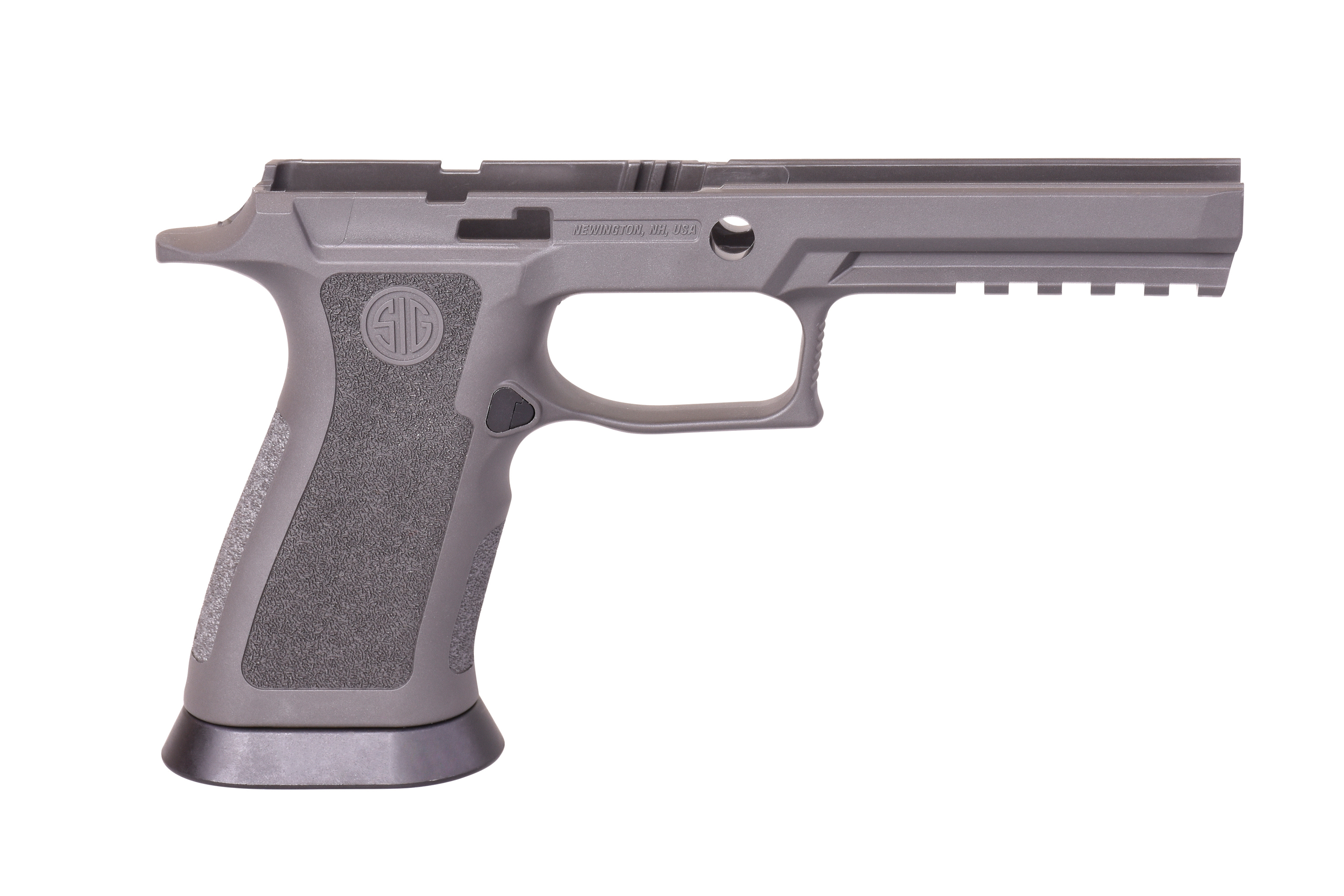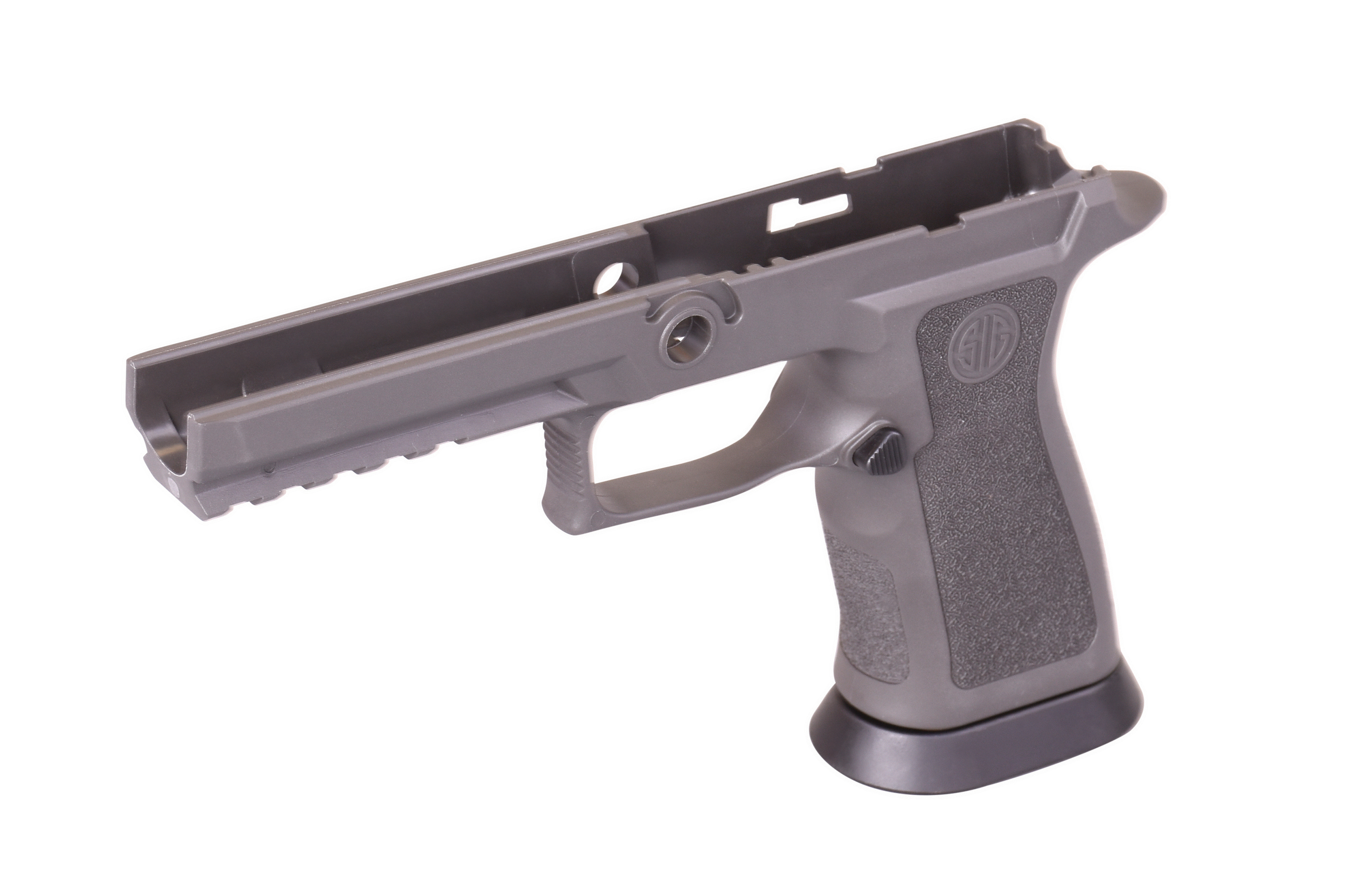 Das Griffstück bietet im Vergleich zum Standard-Griffstück der P320 neben dem höheren Gewicht eine Picatinny-Schiene, ein Magwell, einen großen Undercut beim Abzugsbügel und ein Beavertail.
