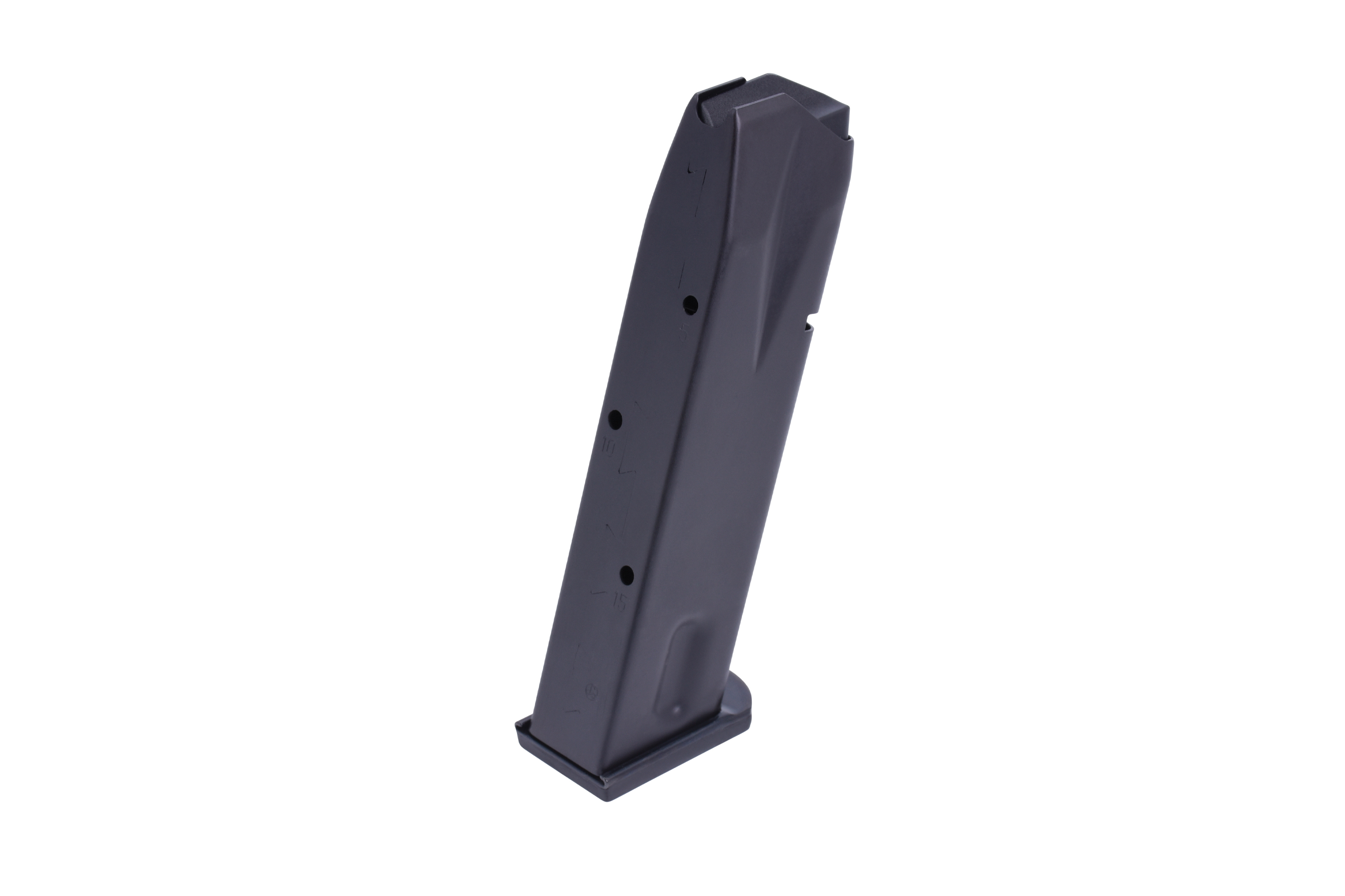 Magazin für die Sig Sauer P226 im Kaliber 9mm Luger mit 15 Schuss, phosphatiertem Magazinkörper und gummiertem Boden.