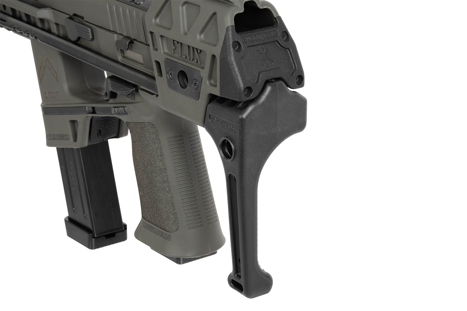 Die schnell ausziehbare Schulterstütze sorgt für zusätzliche Kontrolleund Stabilität. Ein integrierter Flared Magwell unterstützt zügige Magazinwechsel, während das beidseitige Dual-Magazinlöse-System eine ergonomische Bedienung ermöglicht.