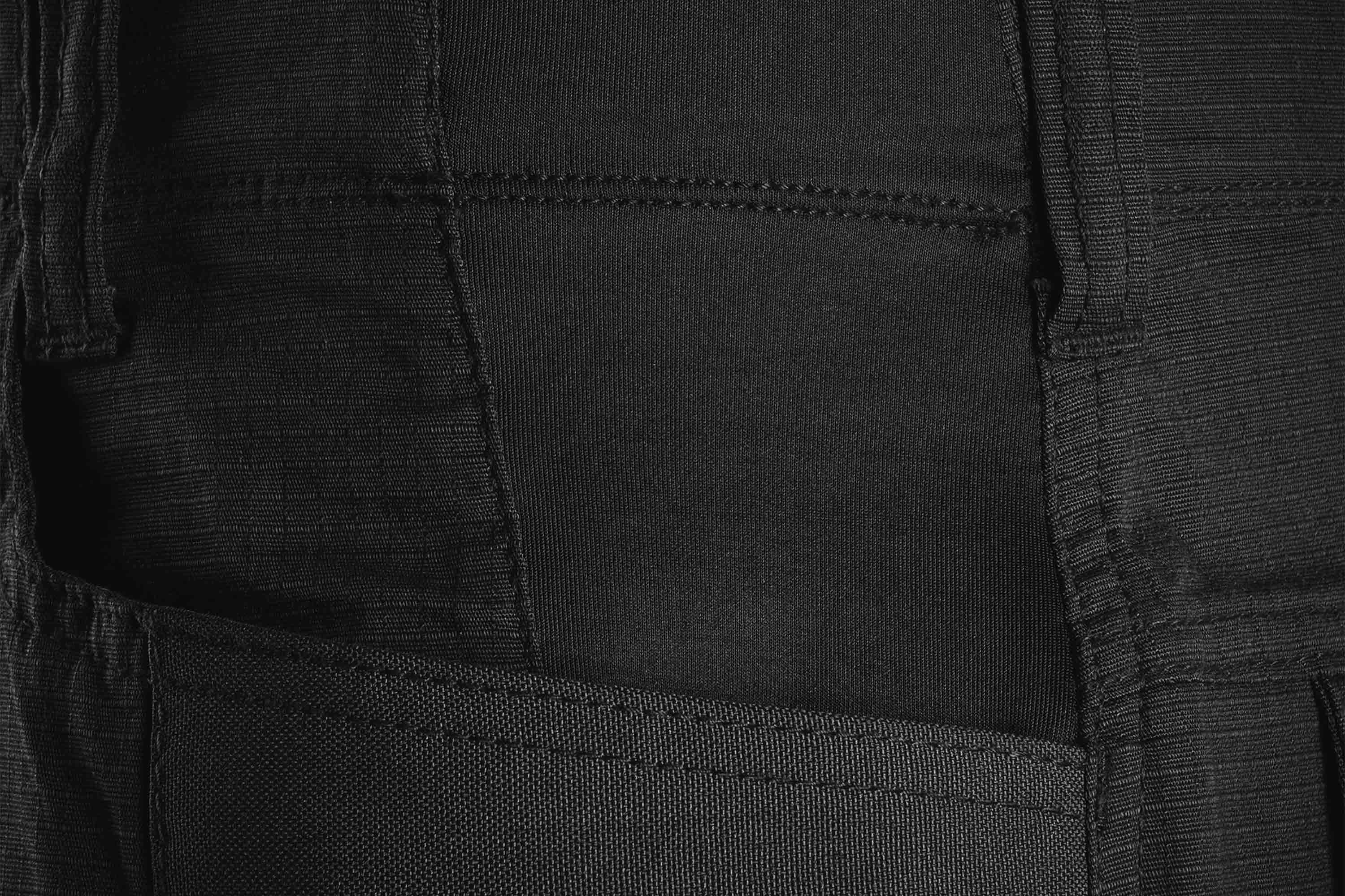 Die Hose besteht aus einem widerstandsfähigen Micro-Ripstop-Gewebe mit Stretch-Anteil. Dieses Material ist besonders robust und reduziert durch seine spezielle Struktur das Weiterreißen von Beschädigungen. Eine zusätzliche Teflon-Beschichtung erhöht die Widerstandsfähigkeit gegenüber Schmutz und Feuchtigkeit.
