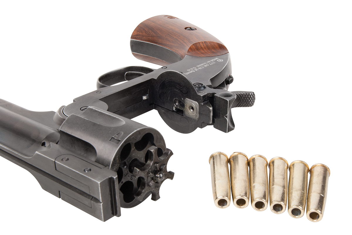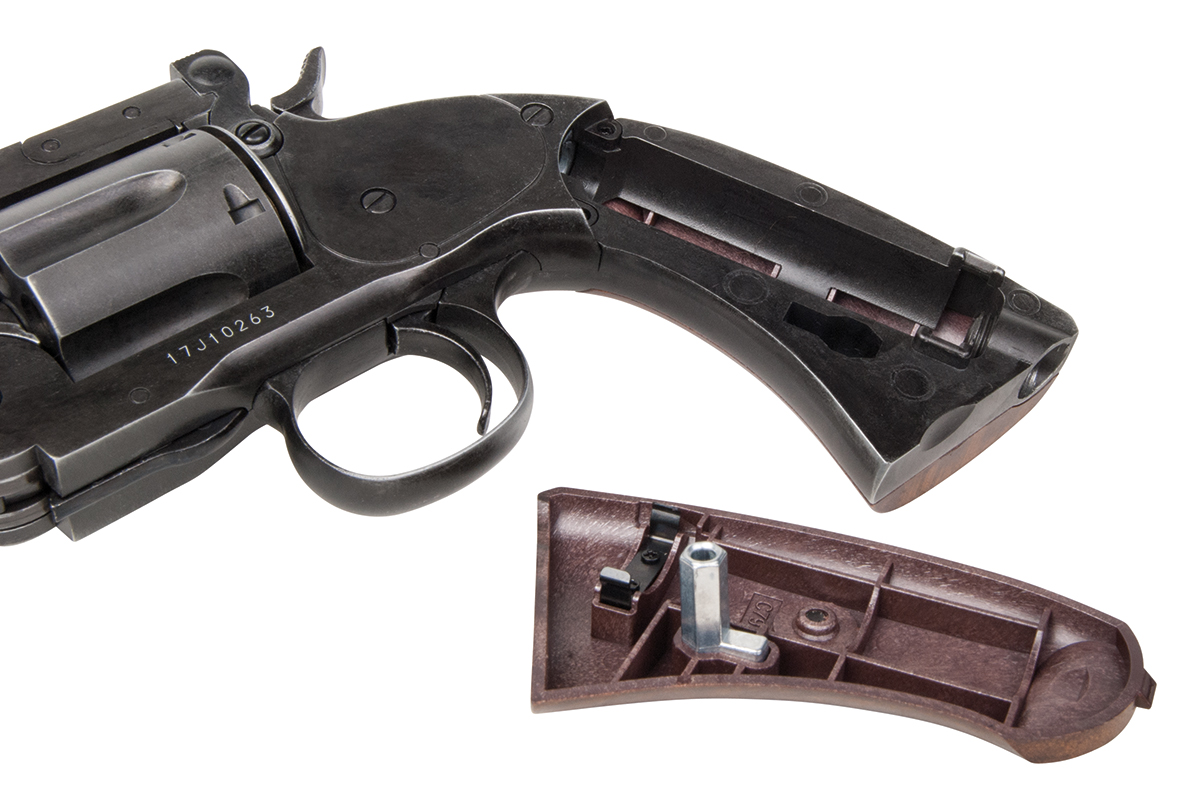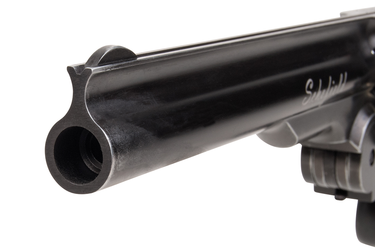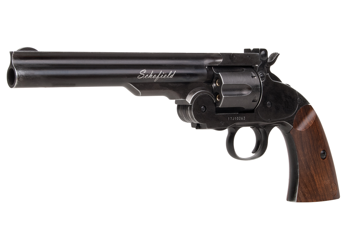 Der im Ursprung von Major Schofield der U.S.-Army konzipierte Revolver verschießt sowohl Diabolos als auch BB's, je nach eingesetzer Hülse. Die Hülsen für BBs sind optional erhältlich. Die Trommel und der Lauf lassen sich mit einer Handbewegung abknicken. Das System drückt die Hülsen aus der Trommel und ermöglich so einen schnellen Ladevorgang. Das hohe Gewicht des Vollmetall-Modells und die gute Verarbeitung lassen nicht nur Sammlerherzen höher schlagen.