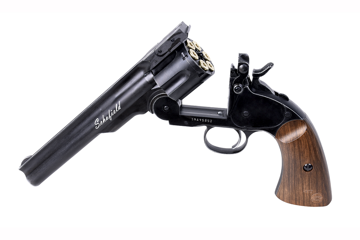 Der im Ursprung von Major Schofield der U.S.-Army konzipierte Revolver basiert auf dem Smith & Wesson Modell 3. Er sollte den Kavalleristen das Nachladen während des Reitens erleichtern. Mit diesem neuen Revolver konnte ein Kavallerist in weniger als 30 Sekunden Nachladen. Er war eine sehr beliebte Waffe und viele der großen Legenden des wildenWestens, wie General Custer, Jesse James und Wyatt Earp, benutzten angeblich einen Schofield-Revolver.