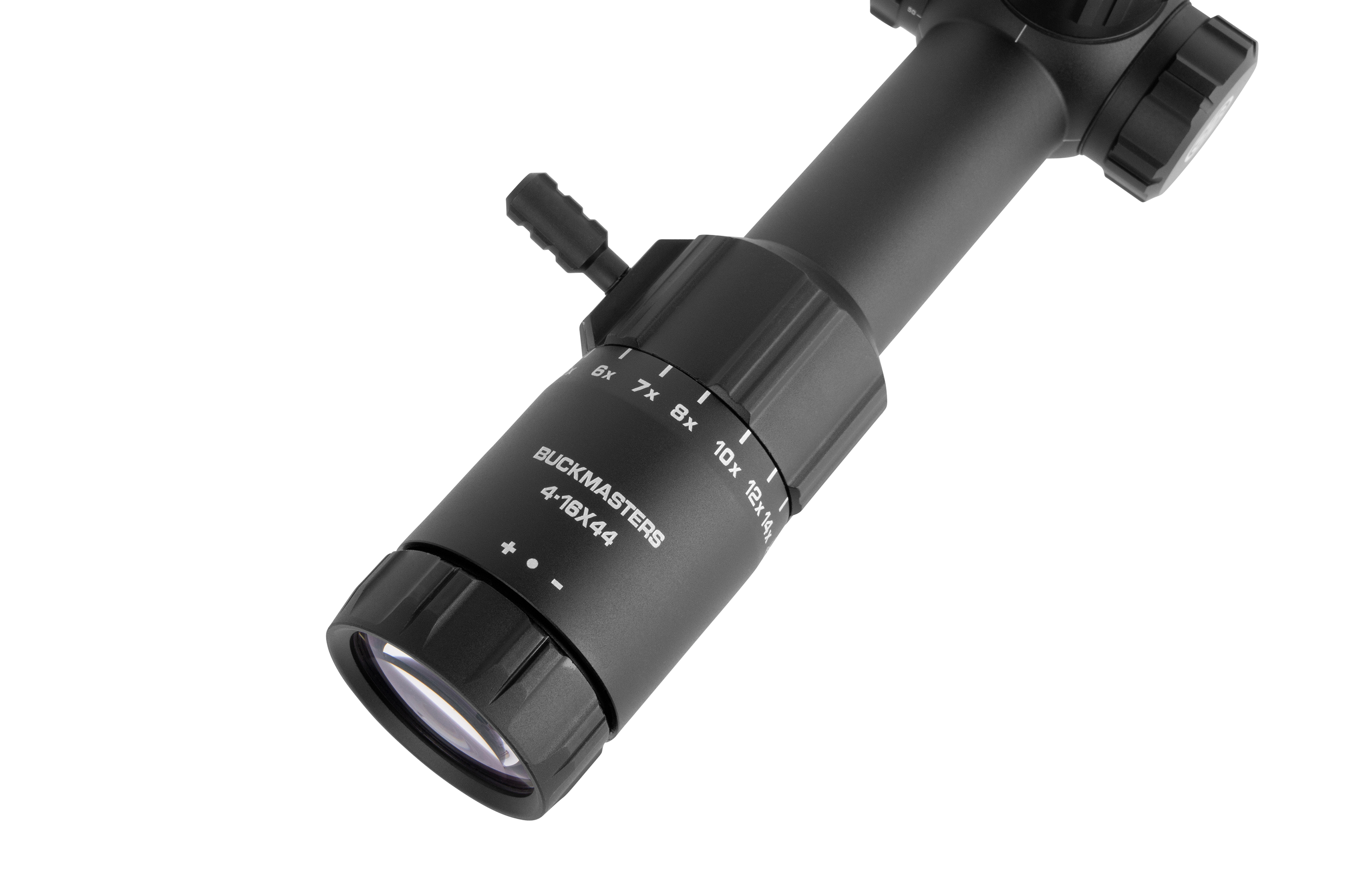 • Buckmasters Bullet Drop Compensation (BDC)-Absehen mit Haltepunkten bis zu 500 Yards