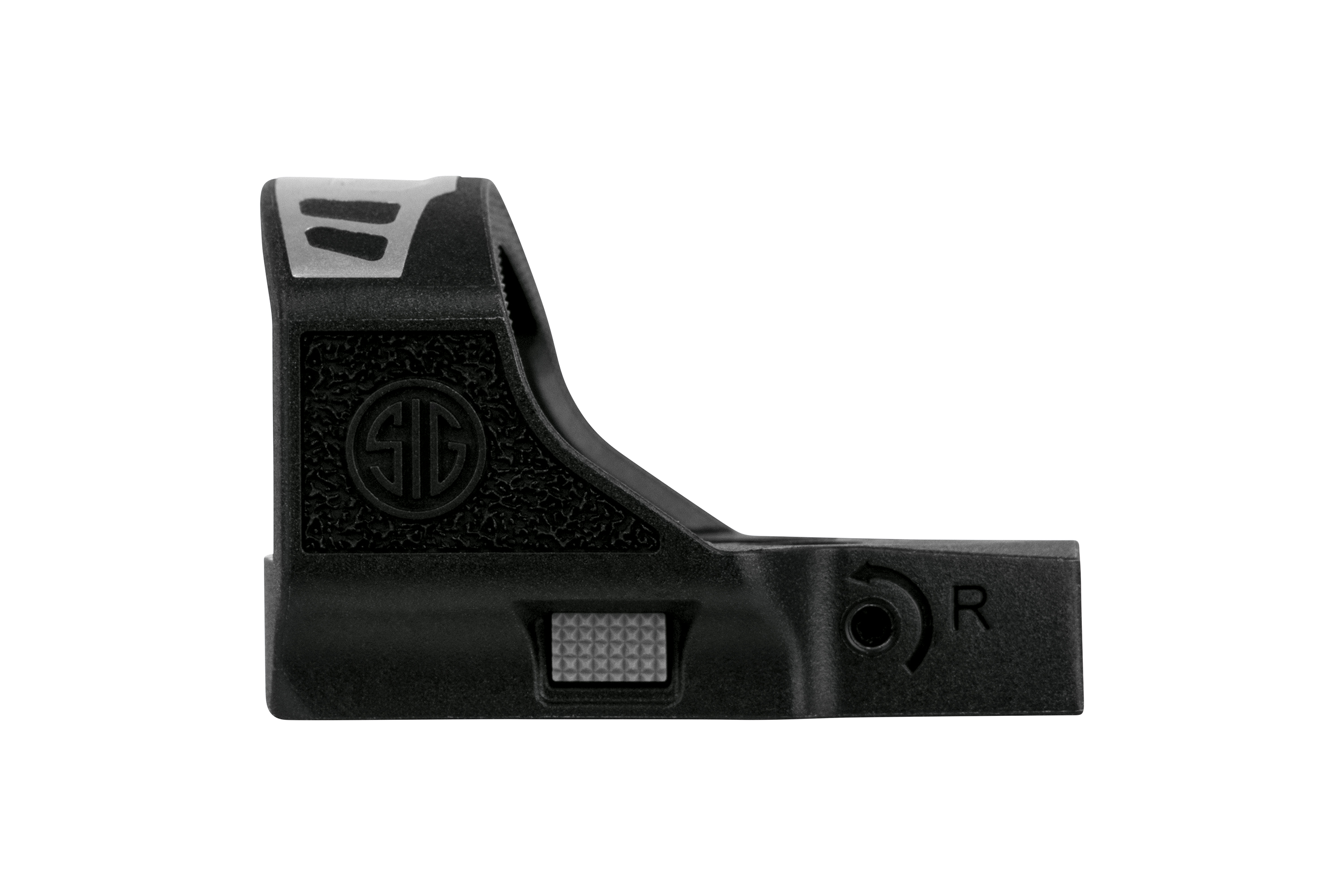 Das SIG SAUER ROMEO-RS verfügt über eine seitlich angebrachte Helligkeitstaste, die in das Polymergehäuse integriert ist, um versehentliche Verstellungen zu vermeiden. Das seitlich zugängliche Batteriefach mit Sicherheitsverschraubung ermöglicht einen schnellen Batteriewechsel – ganz ohne Demontage der Optik und ohne Verstellen der Treffpunktlage.
